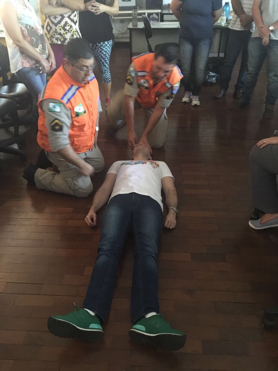 Realização de treinamentos de combate a incêndios com extintores, prática de atendimento de primeiros socorros e plano de abandono da brigada escolar contou com 36 professores e Docentes da Escola Estadual Tomazinho de Umuarama.