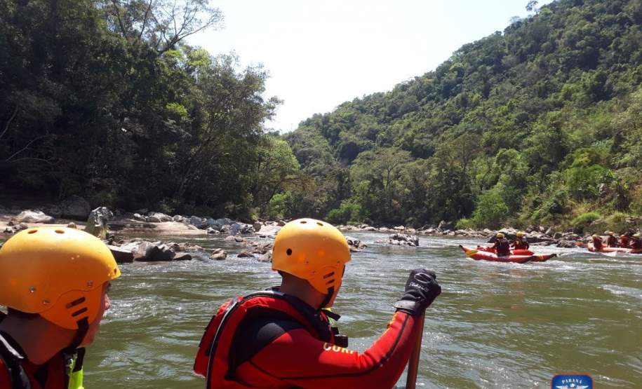 Dando continuidade a capacitação dos bombeiros da equipe da Força Tarefa de Resposta a Desastres (FTRD) do Litoral do Paraná, nesta semana foi concluído com êxito o segundo módulo de treinamento do programa. Com foco na atualização de conhecimentos em Salvamento em Águas Rápidas (SARp), que consiste nas técnicas de busca e resgate em áreas de rios, cachoeiras e enxurradas, as aulas ocorreram no Rio Capivari, em Antonina, e no Rio Ribeira do Iguape, em Cerro Azul, Paraná. A ênfase dada ao curso, foi na prática de técnicas envolvendo embarcações infláveis, aproveitando a recente chegada de dois botes novos do tipo “rafting” e um em formato catamarã, para a unidade.