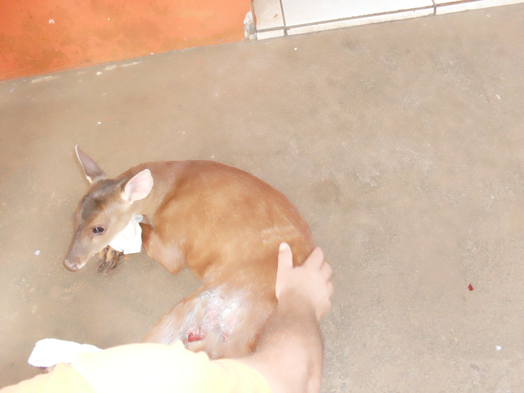 Trata-se de um Veado Cambuta (fêmea), animal em extinção devido a ação de caçadores e a expansão agrícola e é uma das espécies mais ameaçadas entre os cervídeos brasileiros.
