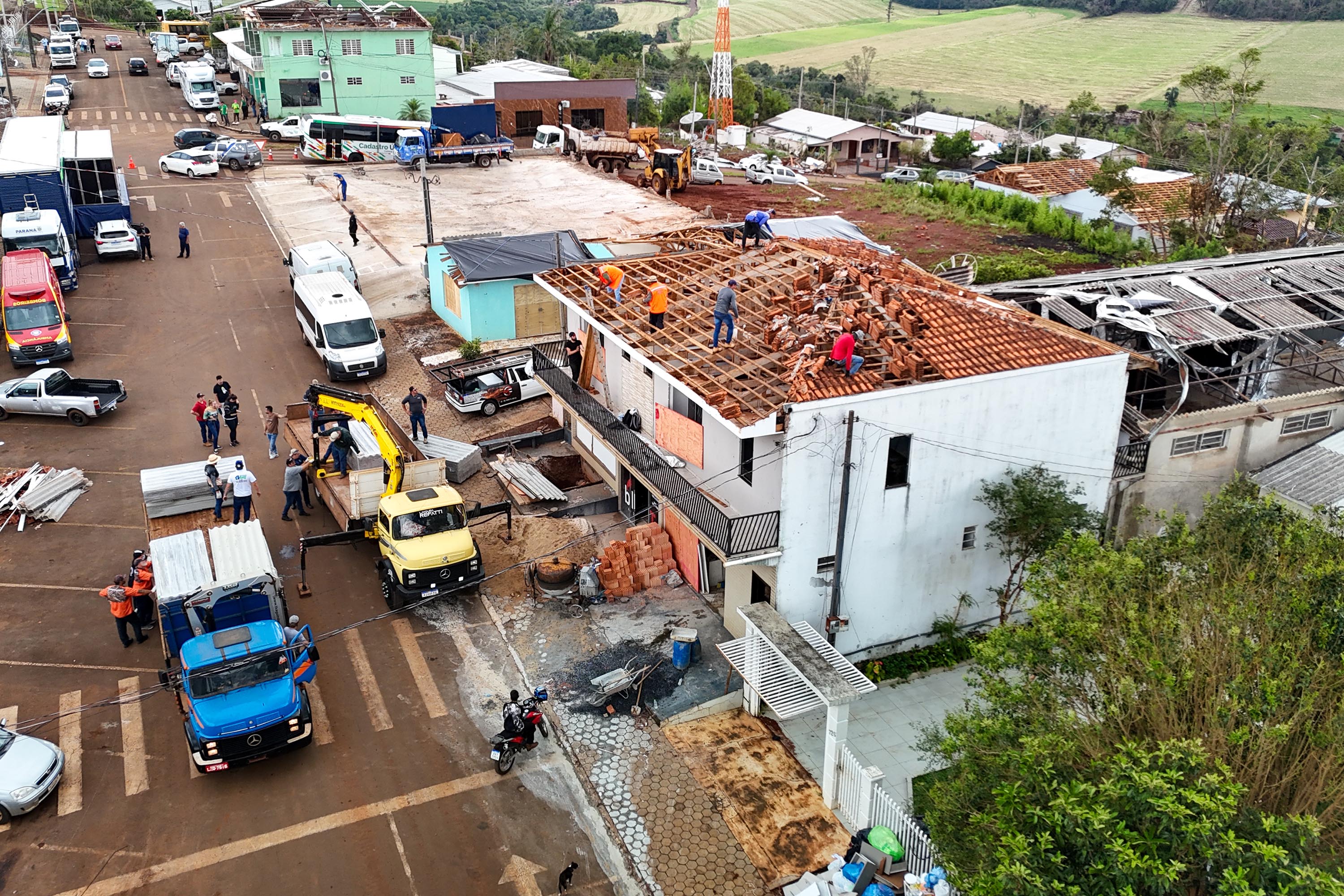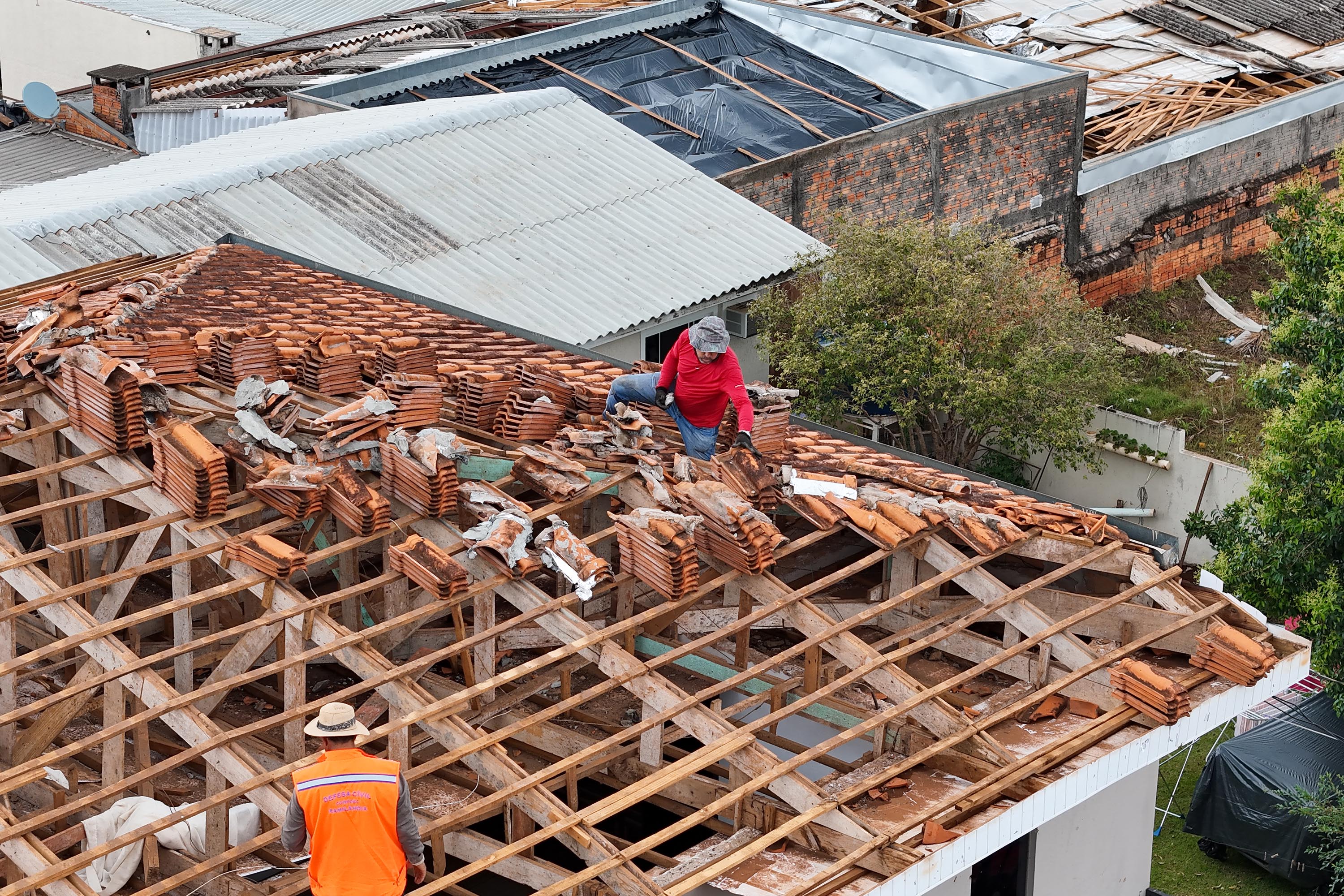 Para acelerar ainda mais a reconstrução, cerca de 60 toneladas de telhas serão entregues neste sábado (15) pela Coordenadoria Estadual da Defesa Civil. Desde o dia do tornado, o Governo do Estado já destinou mais de 10 mil telhas ao município. “O trabalho da Defesa Civil conta com equipes formadas por voluntários, que realizam a entrega dos materiais diretamente nas residências, garantindo agilidade e atendendo o maior número de pessoas possível”, explicou o capitão Edimar Penteado.