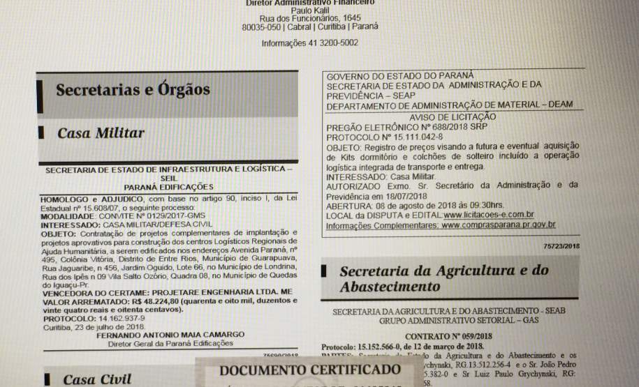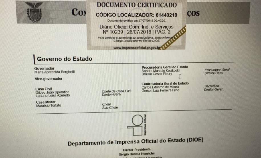 Aviso de Licitação de Bobinas de Lonas Plásticas; no Diário Oficial do Estado - DIOE (Comércio, Indústria e Serviços) nº 10239 de 26 de Julho de 2018.