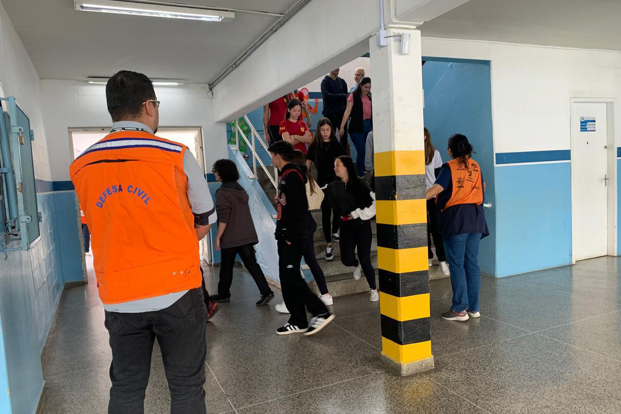 A partir do alerta, as duas escolas evacuaram as edificações e deslocaram de forma ordenada as centenas de alunos que estavam em sala de aula. Em menos de cinco minutos todos estavam organizados nos pátios, pontos de encontro definidos como seguros. Em cada um dos colégios há aproximadamente 20 brigadistas treinados entre os servidores. São professores, diretores, auxiliares de limpeza e da cozinha.