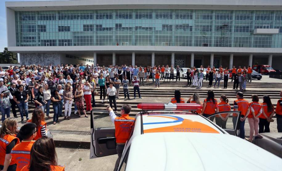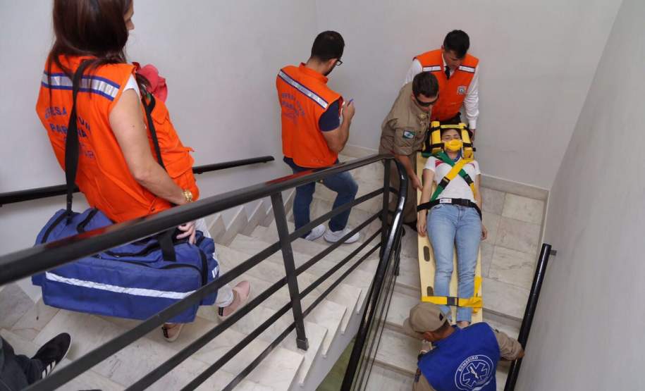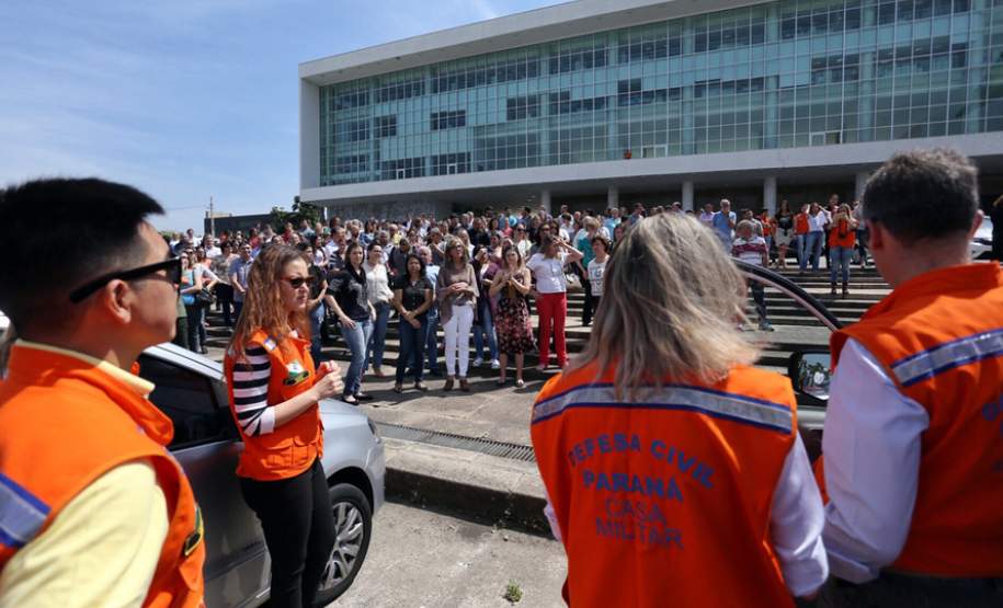 Equipes de brigadistas do Palácio Iguaçu, sede do poder executivo estadual, fizeram uma simulação de incêndio com abandono das instalações e simulações de resgate de vítimas nesta sexta-feira (06), em Curitiba. Foi a primeira ação dessa natureza feita no local, orientada e coordenada por uma equipe da Defesa Civil do Paraná, com apoio da Casa Militar e do Corpo de Bombeiros. Mais de 200 pessoas, entre funcionários e equipes de segurança, participaram do exercício.