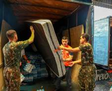 AÇÕES – O Paraná tem prestado apoio às cidades gaúchas também com o envio de forças de segurança e equipamentos. Já foram enviados bombeiros para trabalhar nos resgates, policiais militares para ajudar a coibir roubos e saques nos locais mais afetados, policiais civis para apoiar as autoridades locais e profissionais da Polícia Científica.