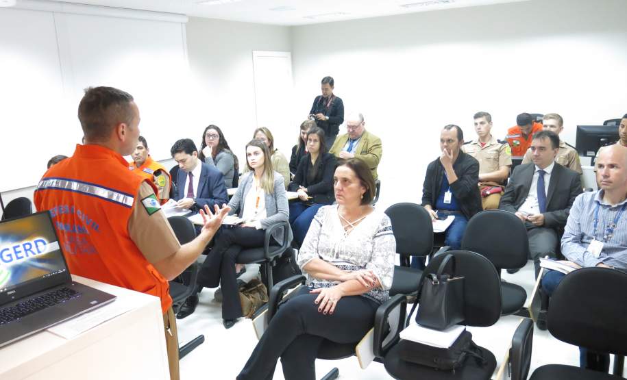 PARTICIPANTES - Participaram da palestra representantes de várias instituições do Estado, inclusive aquelas que participam do Comitê de Barragens do Paraná. Entre elas estão representantes do Ministério Público do Paraná, Corpo de Bombeiros, CREA-PR, Defesa Civil, Águas Paraná, Agência Nacional de Mineração, Sanepar e Copel.