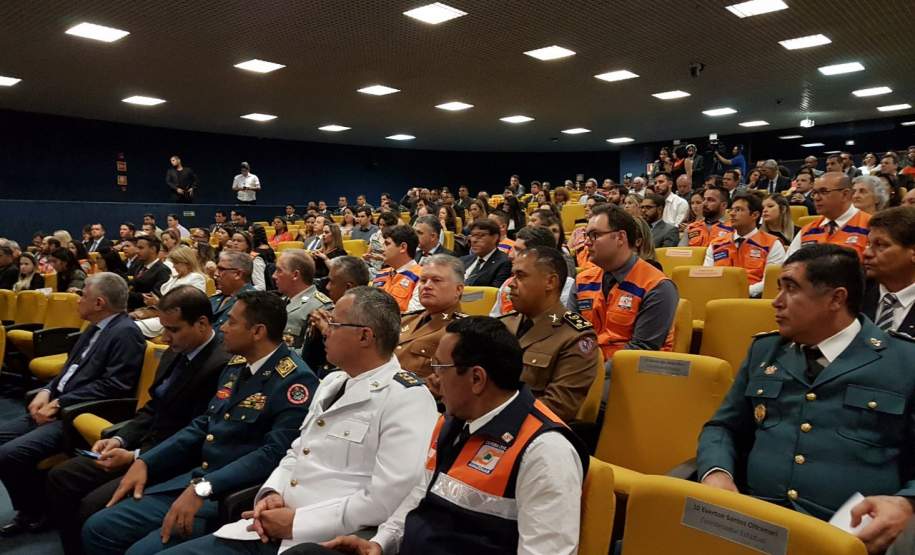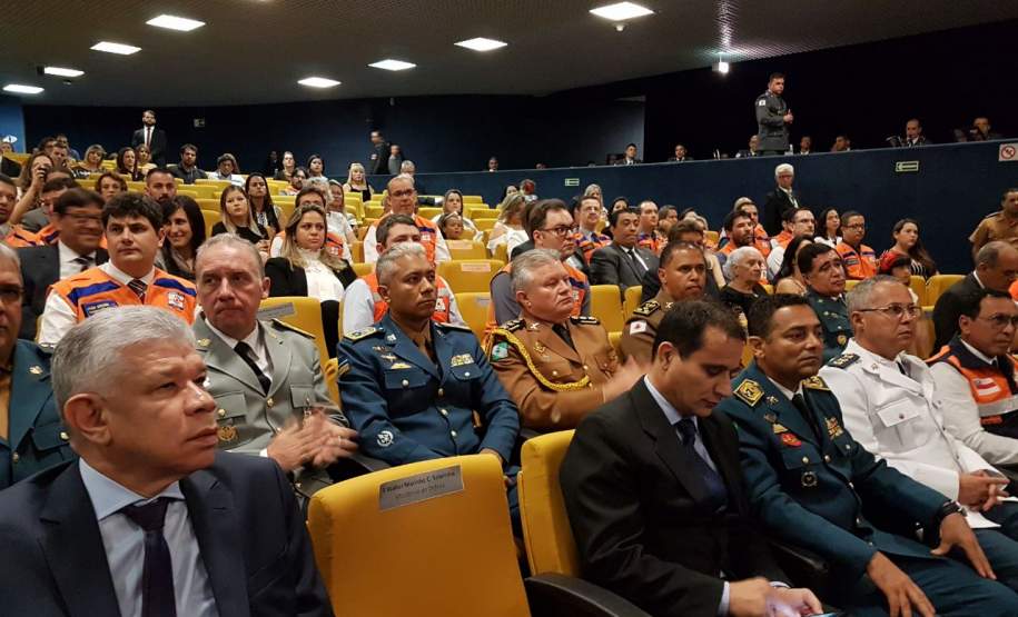 A solenidade ocorreu no auditório da Procuradoria Geral da República em Brasília, estando o Coronel Elio acompanhado do Coordenador Executivo de Proteção e Defesa Civil do Paraná, Tenente-Coronel Edemilson de Barros.