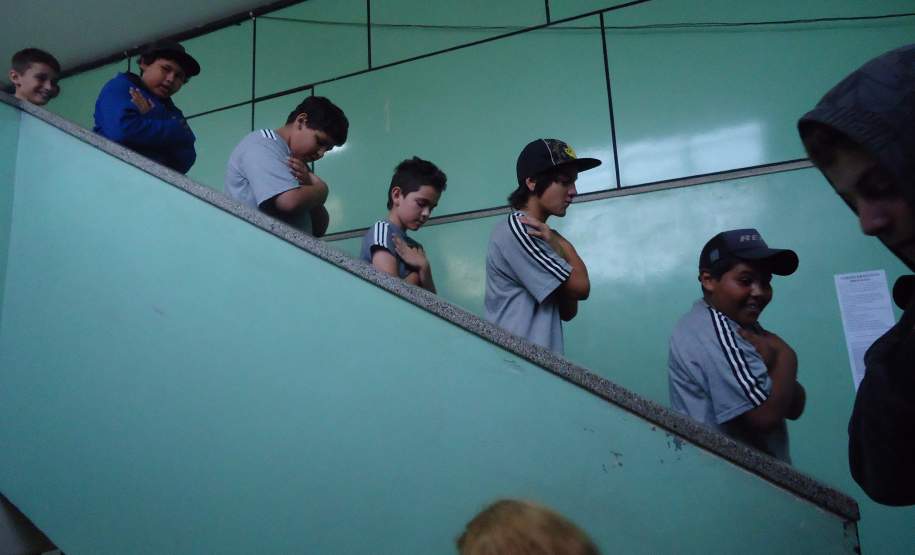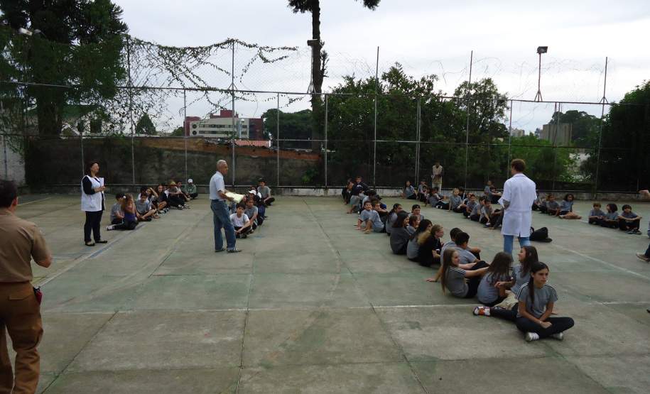 O exercício iniciou-se com o acionamento do alarme de emergência, com isso os alunos foram retirados da sala de aula e encaminhados ao pátio, onde os professores verificaram a presença de todos os alunos no local de encontro.
