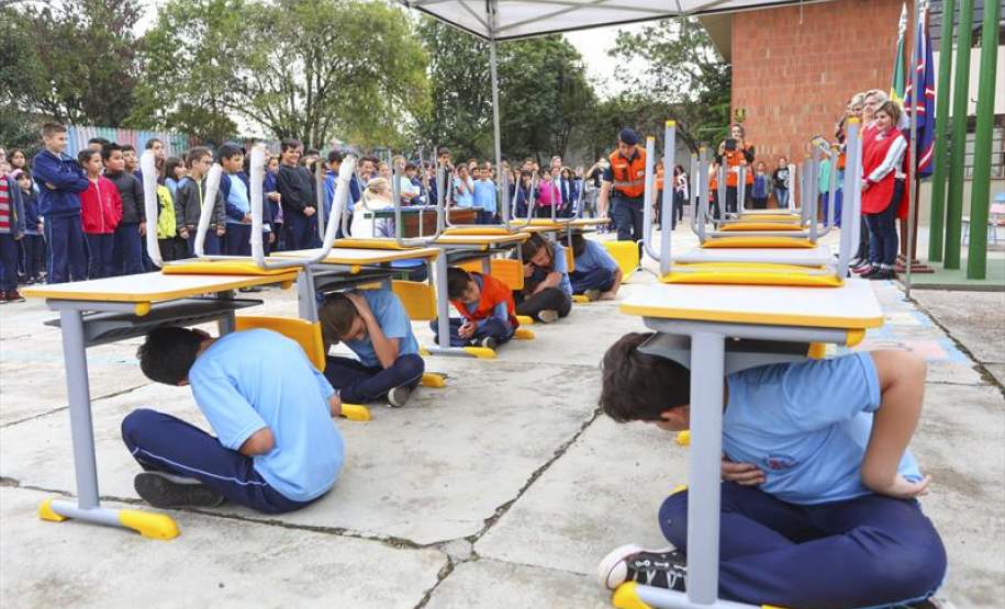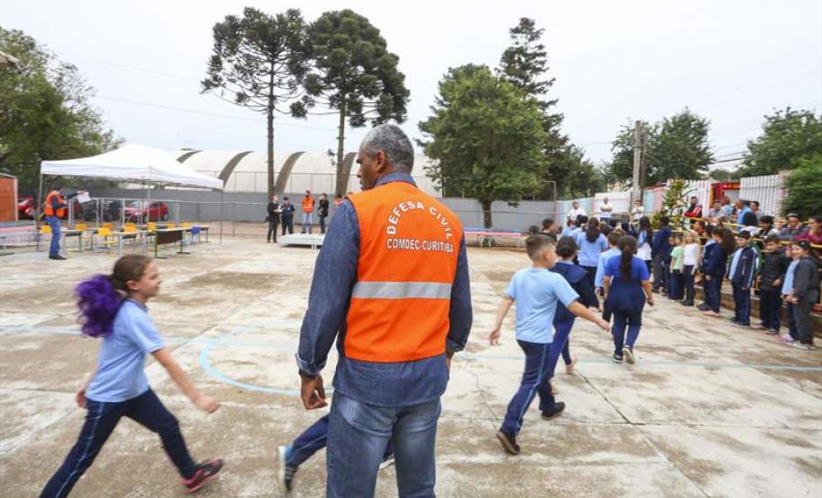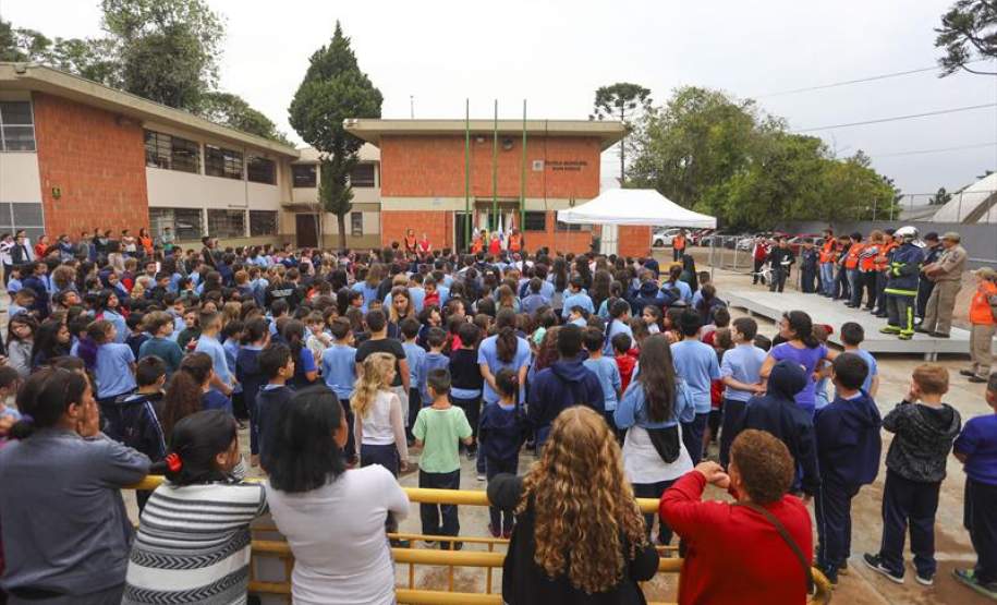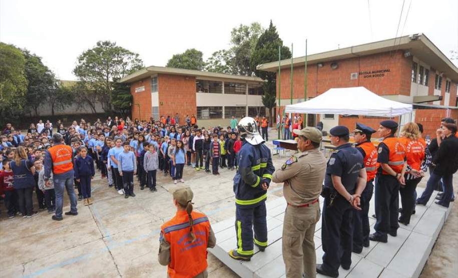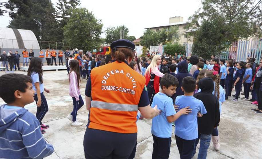 Nesta terça-feira (10/10) foi a vez de 360 estudantes da Escola Municipal Dom Bosco, na CIC, passarem pelo treinamento prático, com a participação de equipes da Defesa Civil, Guarda Municipal e Corpo de Bombeiros. A simulação foi acompanhada, inclusive, por alguns dos pais das crianças.