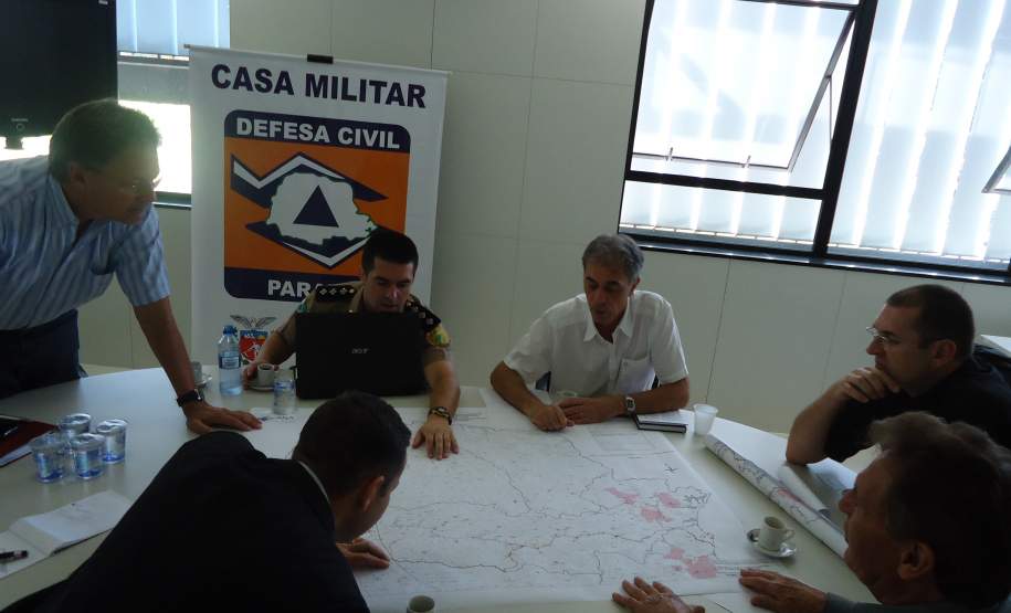 Aconteceu nesta manhã uma reunião no Palácio das Araucárias, sede da Defesa Civil Estadual, com a presença de representantes do Instituto Tecnológico Simepar - SIMEPAR, Instituto das Águas, Agência Nacional de Águas- ANA,Minerais do Paraná - MINEROPAR e Coordenadoria Estadual de Defesa Civil- CEDEC.