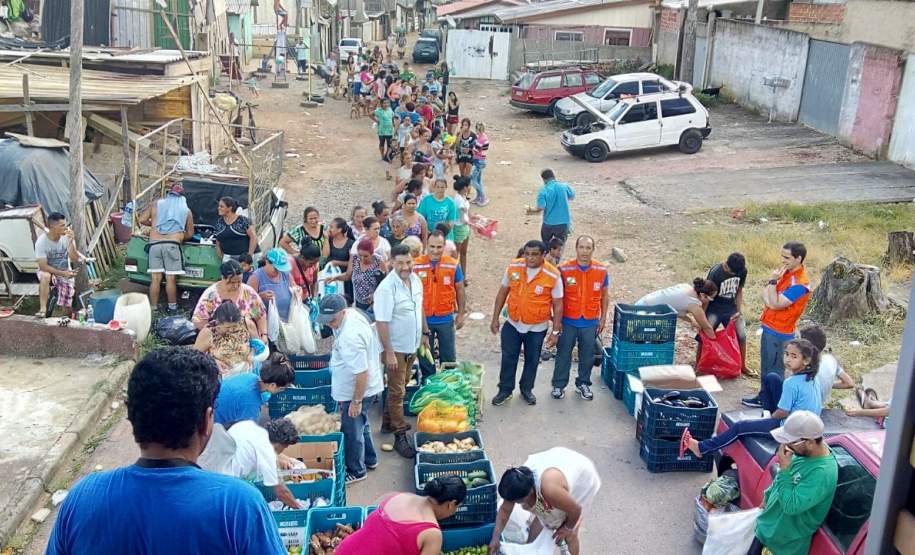 Na sexta-feira (9), a Coordenadoria Estadual de Proteção e Defesa Civil e a Secretaria de Estado de Abastecimento e Agricultura auxiliaram as Unidades Regionais do Fazendinha e da CIC do município de Curitiba no atendimento à população atingida por inundações em ambos os bairros.