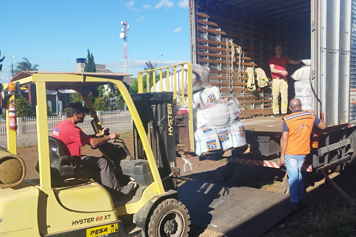 Nesta sexta-feira (26), mais materiais também seguem para Santa Maria do Oeste, complementando o que já foi enviado para o município. São 7.800 telhas, 356 cestas básicas, 356 kits higiene, 356 kits limpeza, 356 kits dormitório e 243 colchões.