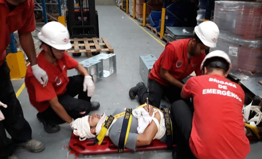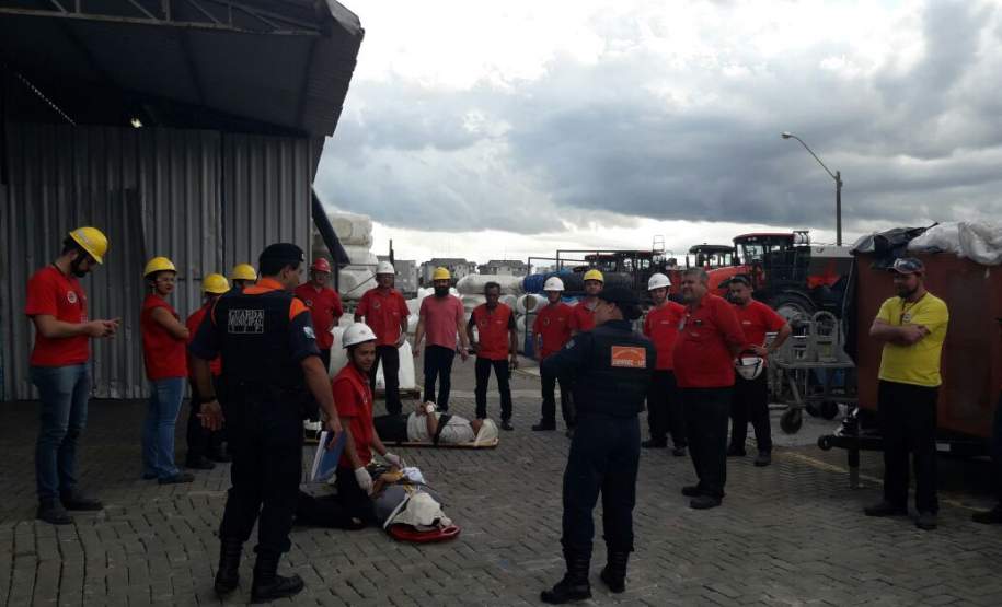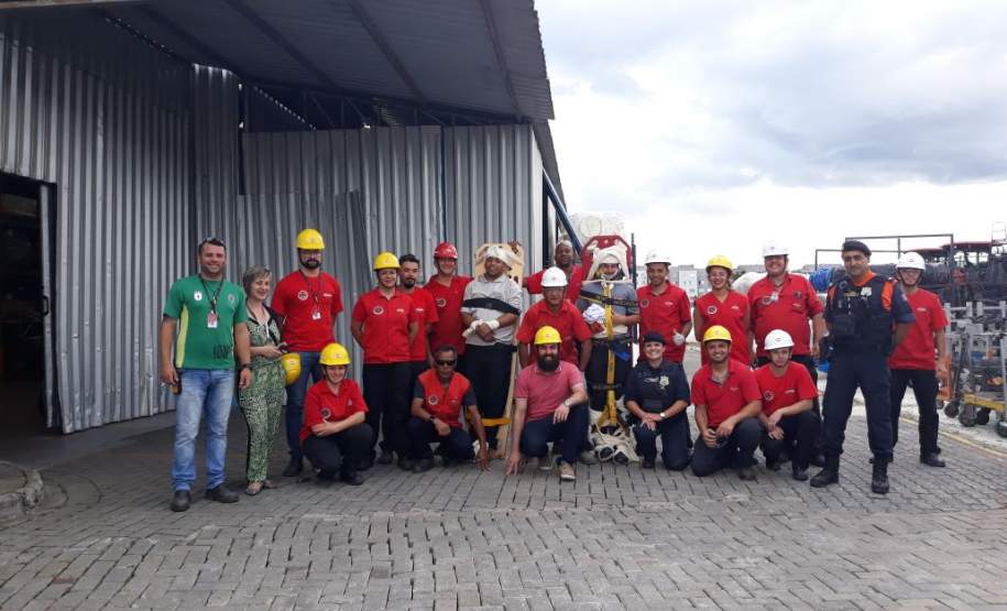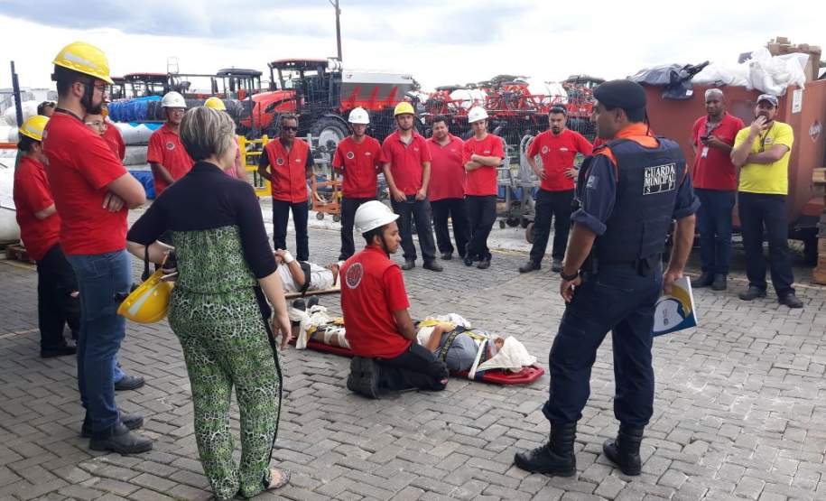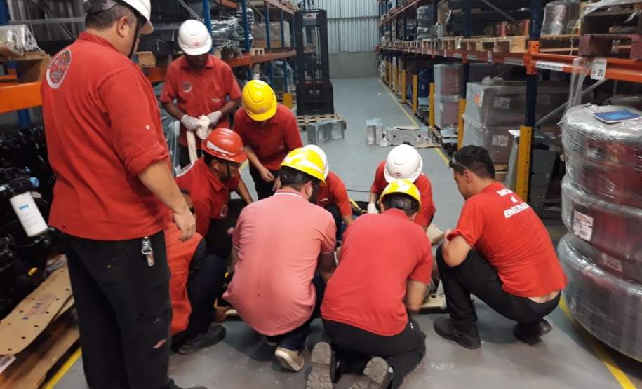 Para efetivação do treinamento a equipe da Defesa Civil Municipal contou com o apoio dos colaboradores da Kunh, Fabiana Potoski e Felipe Bini, que providenciaram um cenário simulando acidente de trabalho envolvendo inicialmente uma vítima de trauma e posteriormente outra vítima em virtude da condição de estresse causada pelo evento (esta última apresentando sintomas clínicos com complicações posteriores decorrentes de queda de mesmo nível).