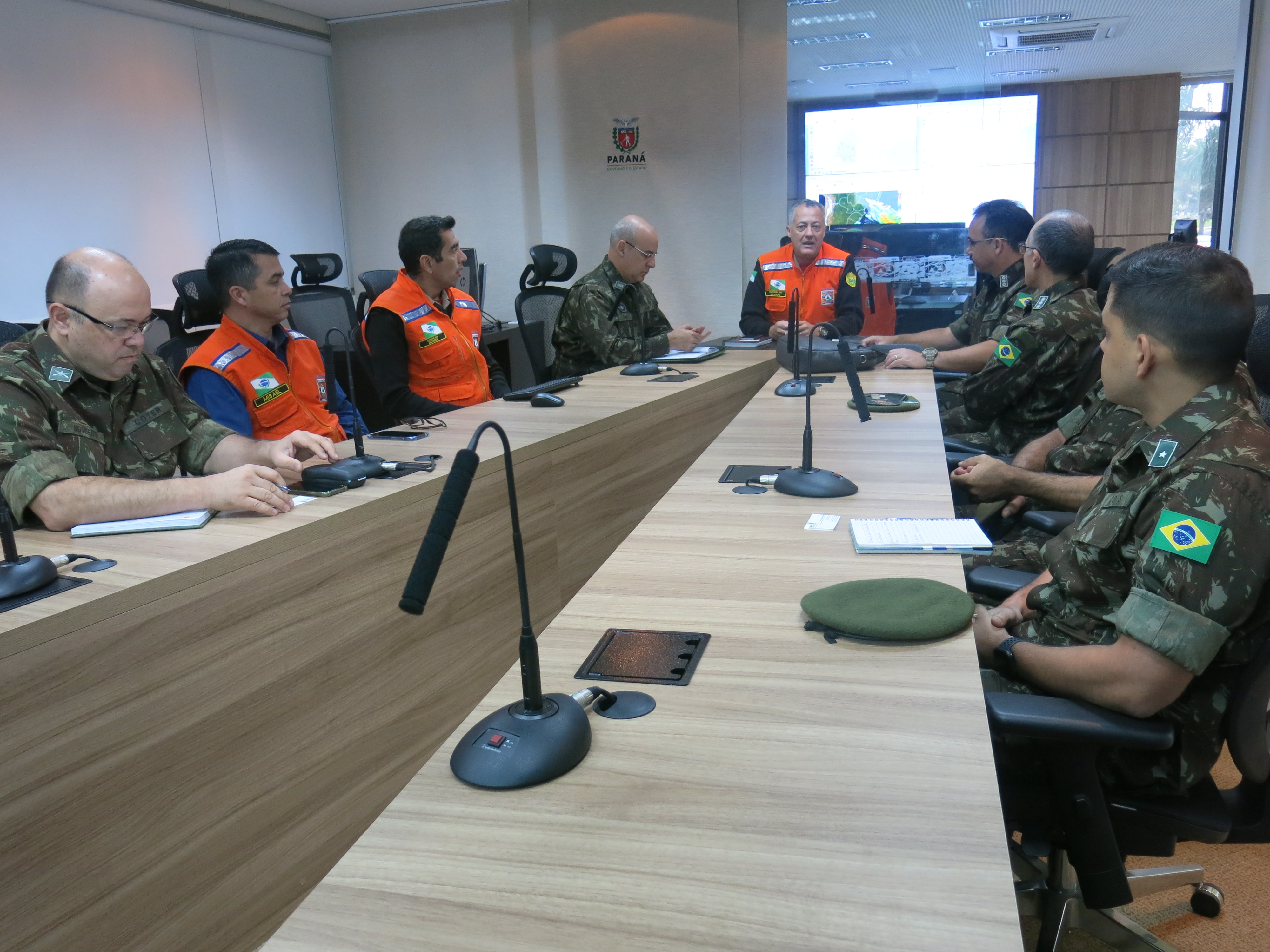 Nesta sexta-feira (05), membros do Comando de Operações Terrestre (COTER) do Exército Brasileiro, liderados pelo Coronel Abinoan, visitaram a Defesa Civil do Estado do Paraná para conhecer o SISDC e suas ferramentas de gestão, além de outros projetos em andamento na instituição.