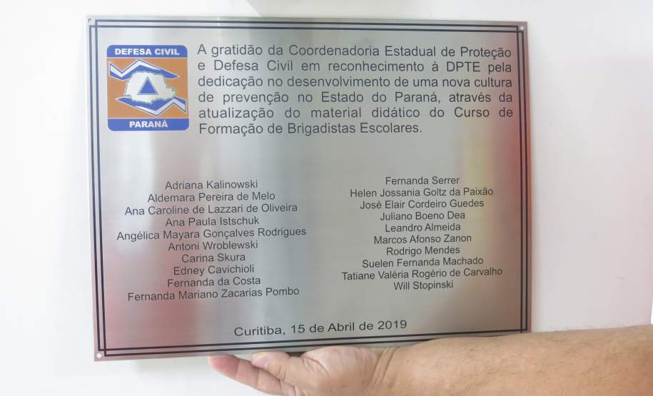 Defesa Civil do Paraná homenageia Departamento de Políticas e Tecnologias Educacionais 02/05/2019 - 15:09