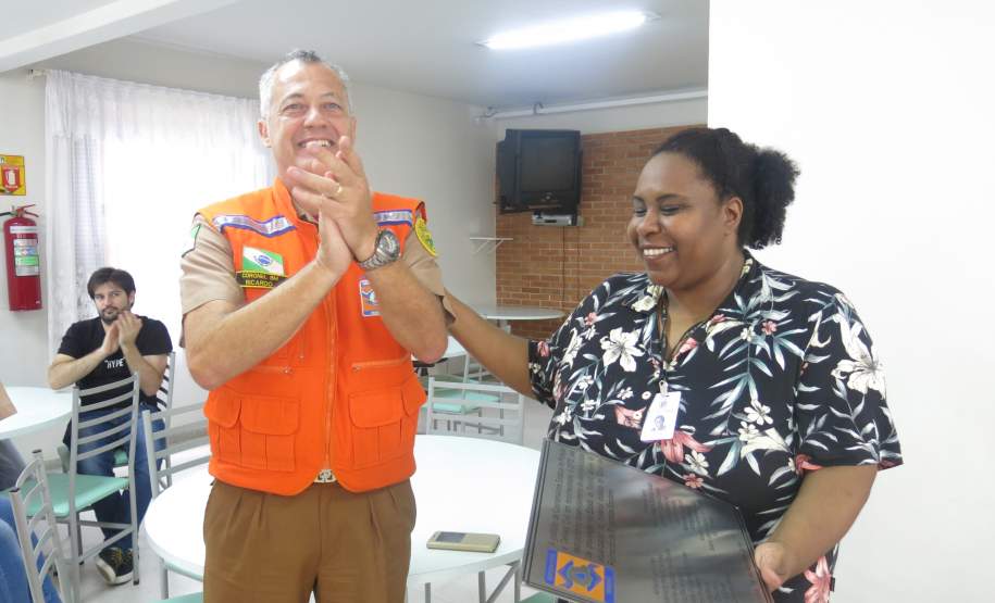 A homenagem foi realizada para a equipe que atualizou o material didático do Curso Brigadas Escolares- Defesa Civil na Escola.