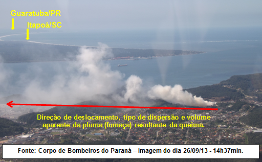 • A fumaça (pluma) produzida não se deslocava ao litoral de Paraná, e sim a noroeste do local do incêndio;