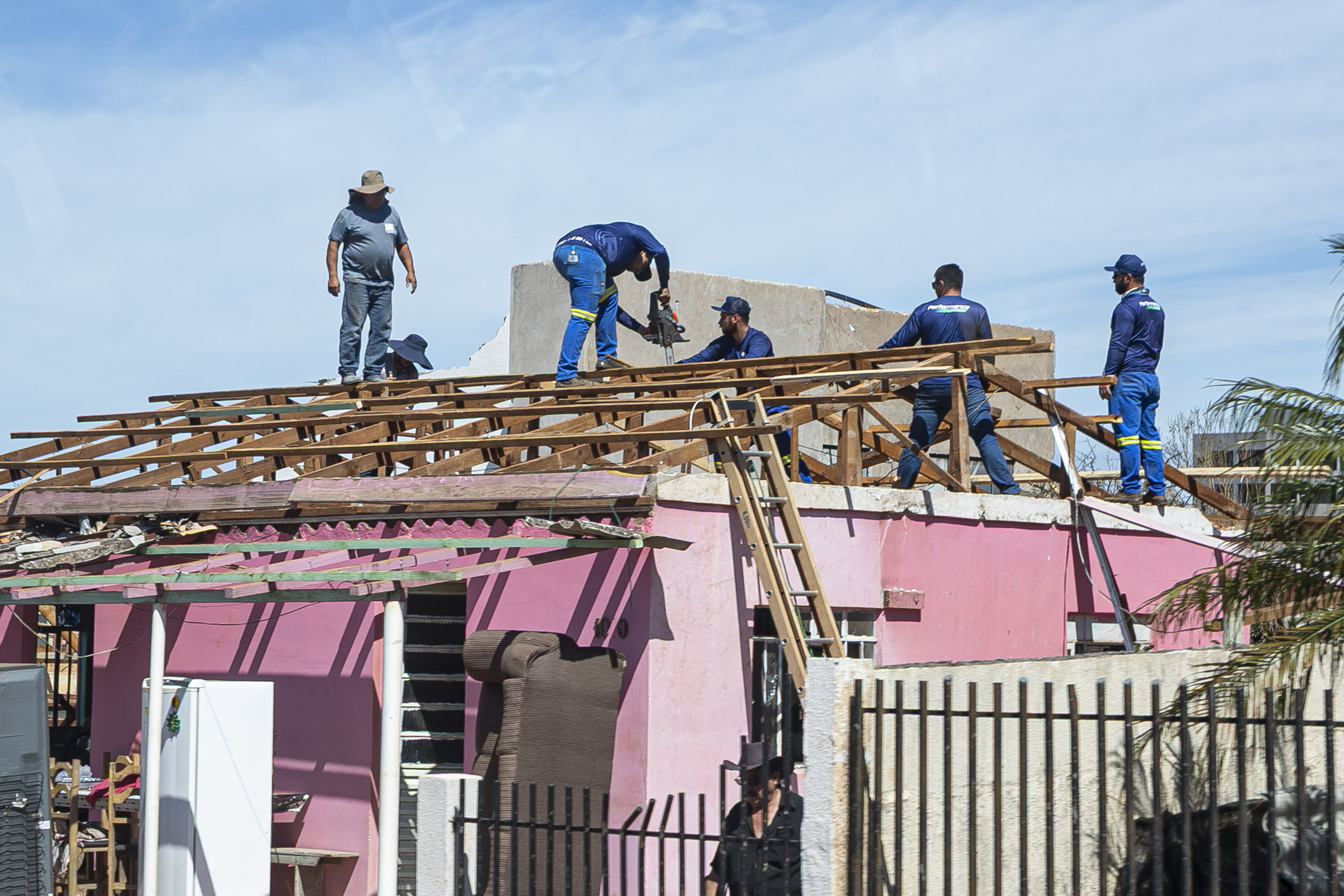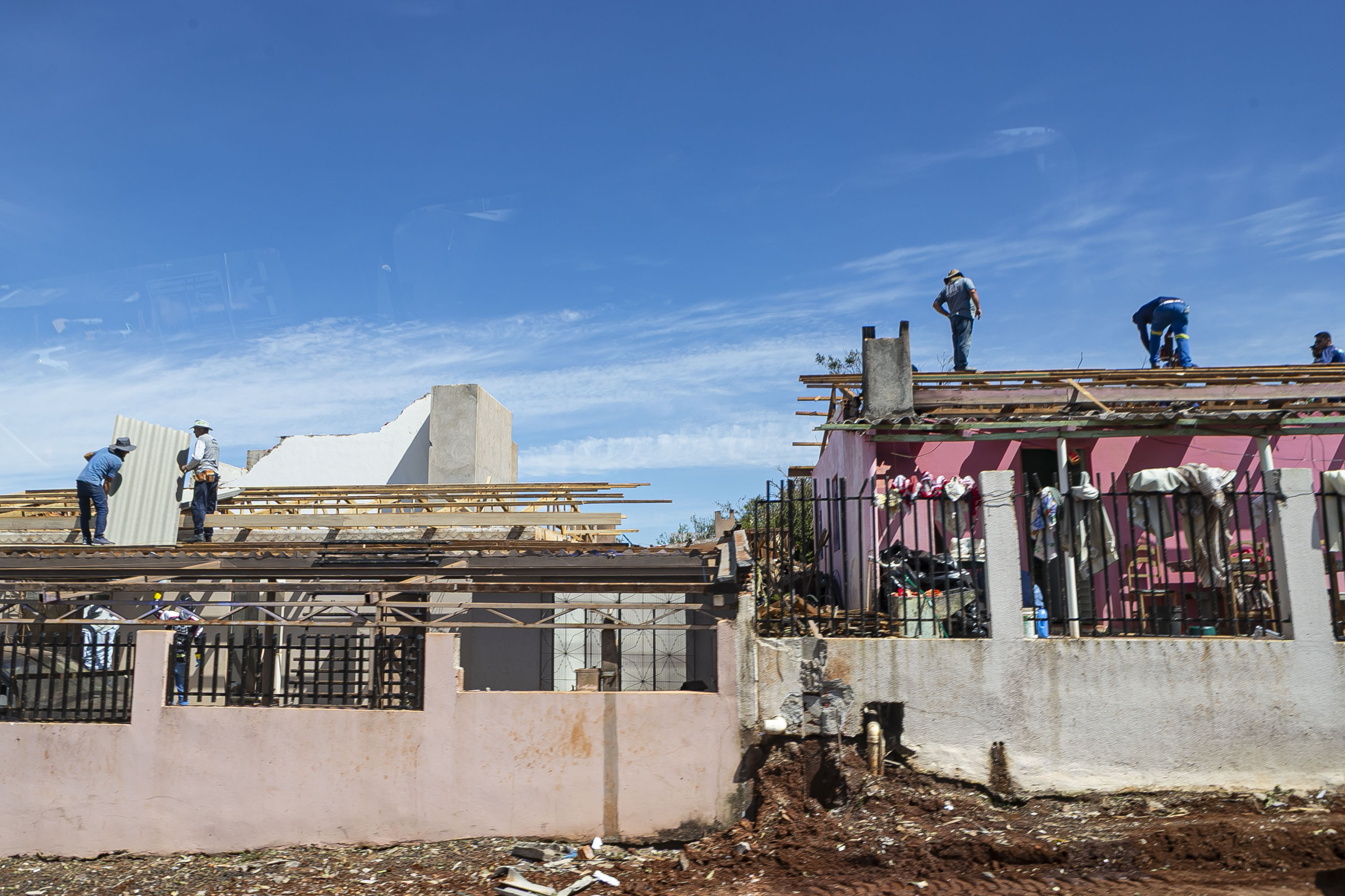 As equipes do Governo do Estado presentes no município estão focadas desde o sábado (8) na limpeza e reconstrução de Rio Bonito do Iguaçu, que tem pouco mais de 14 mil habitantes e teve 90% de sua parte urbana atingida pelo tornado.