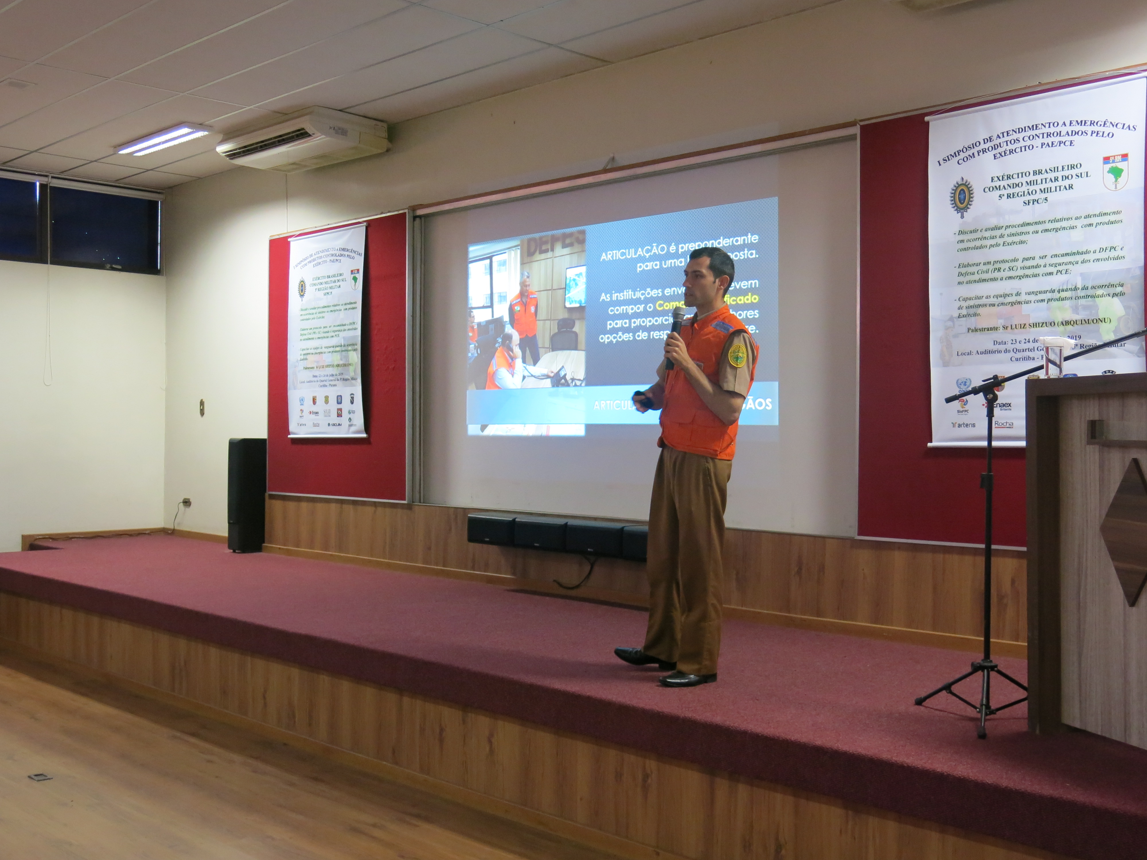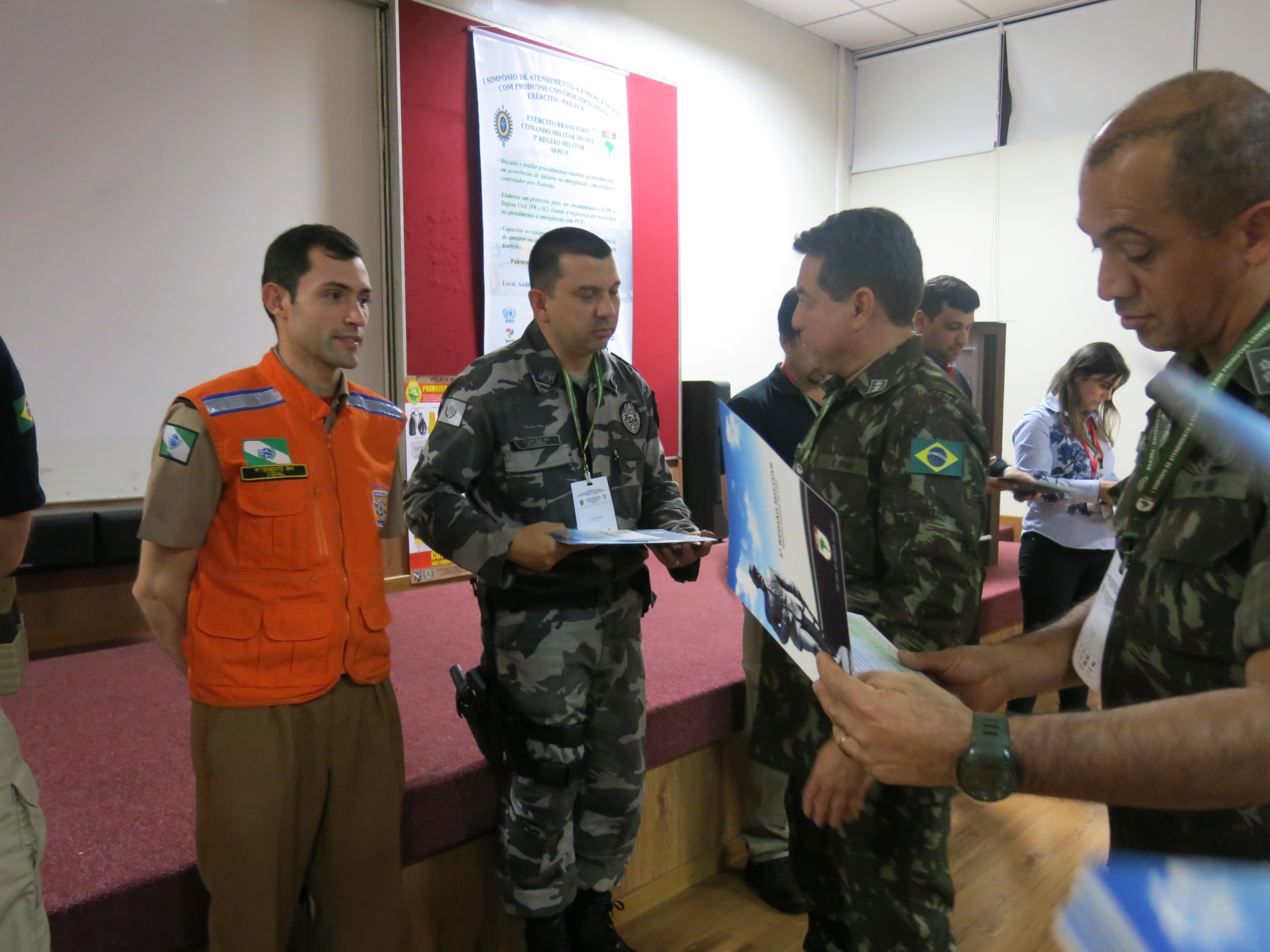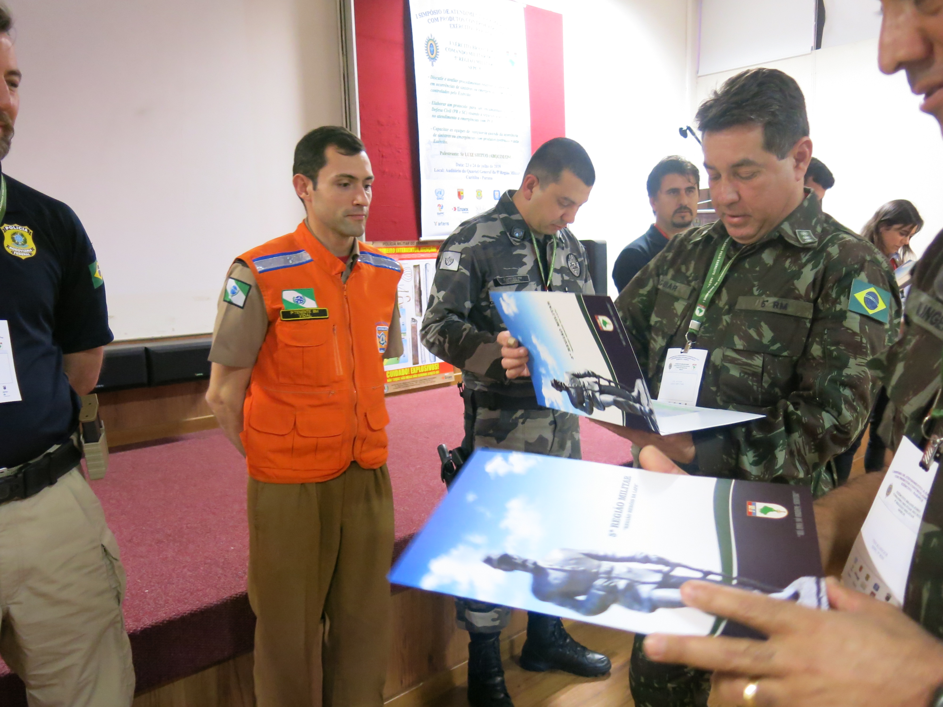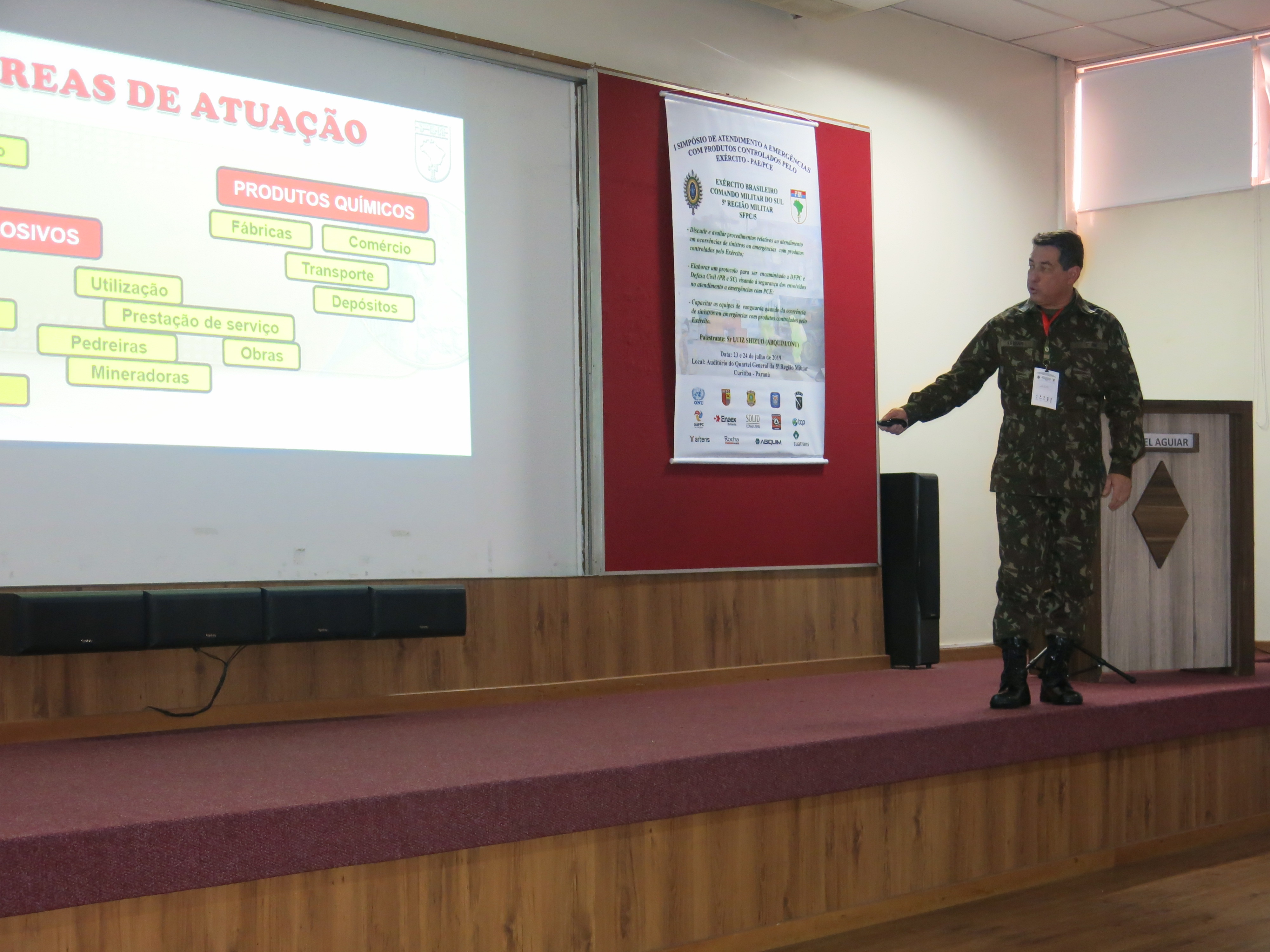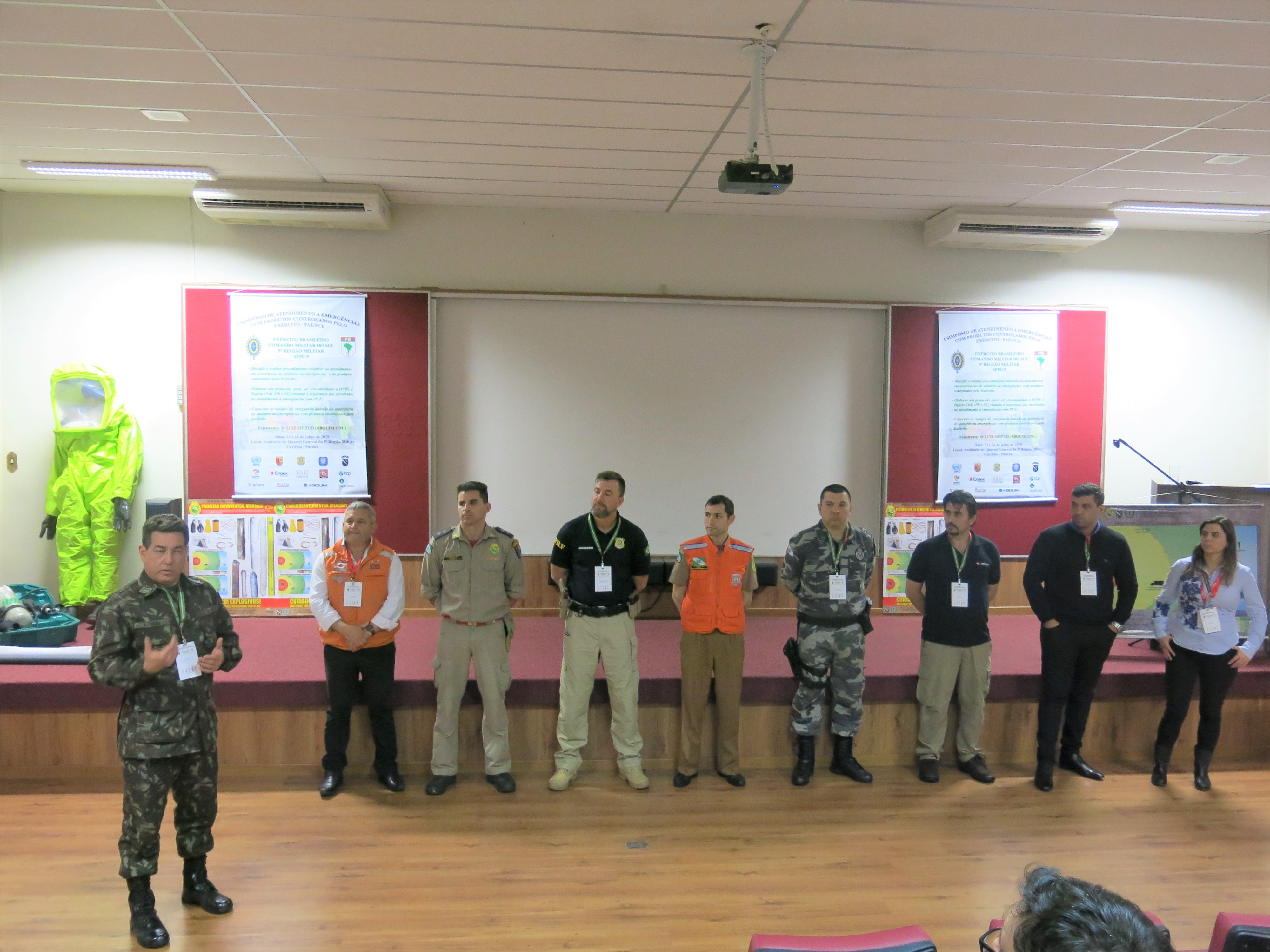 O evento organizado pelo Setor de Fiscalização de Produtos Controlados do Exército Brasileiro, responsável pela normatização e fiscalização desses produtos, contou com a participação de diversas instituições públicas e privadas envolvidas no atendimento a emergências, assim como empresas privadas que atuam no ramo de comércio desses produtos. Tanto as instituições quanto as empresas fizeram apresentações sobre seus protocolos de emergência, trocando experiências sobre situações reais que foram importantes para desenvolver protocolos de segurança mais adequados. O principal palestrante do evento foi o sr. Luiz Shizuo, representante da ABIQUIM – Associação Brasileira de Indústrias Químicas, com experiência de mais de quarenta anos na área. A ABIQUIM é conhecida no ramo de emergências especialmente por seu manual de atendimento.