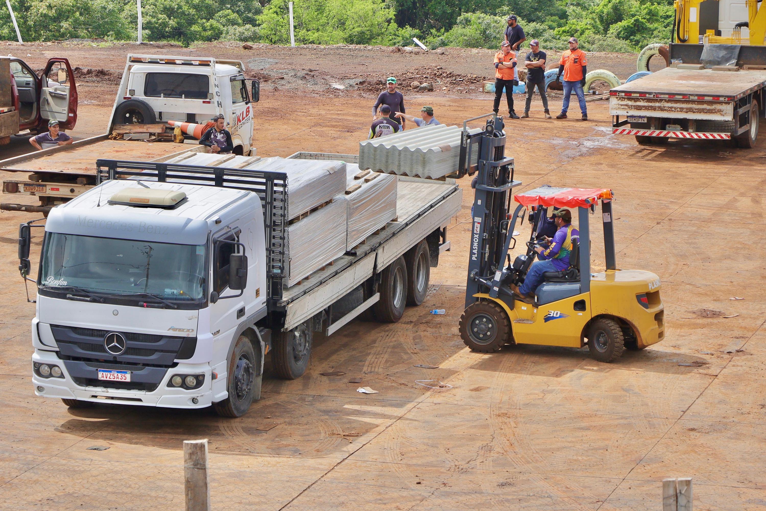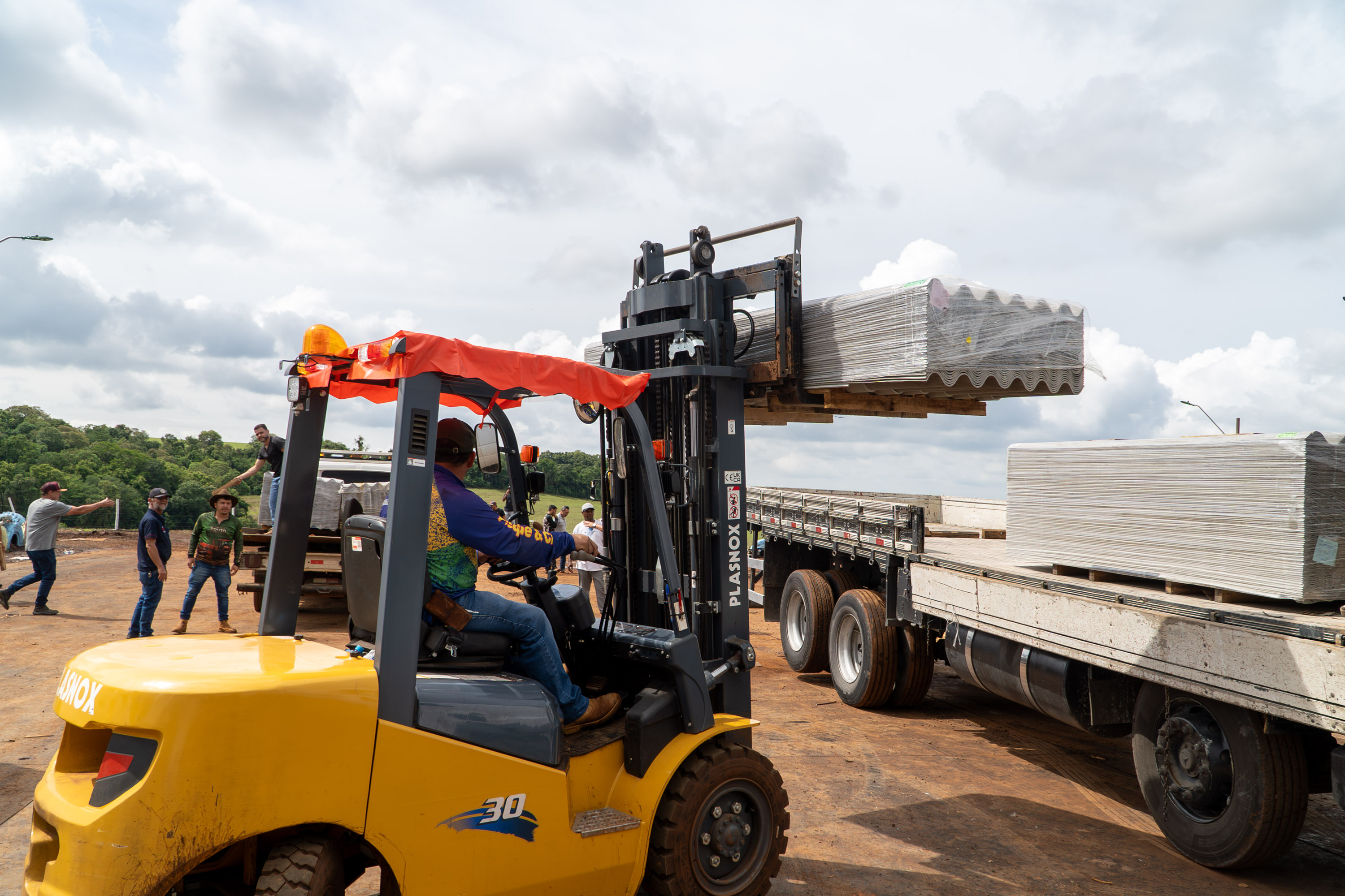 Para manter o ritmo da reconstrução, novos carregamentos seguem sendo enviados. Neste sábado (15), outras 60 toneladas de telhas estão sendo entregues pela Defesa Civil Estadual, divididas entre manhã e tarde. O volume se soma às 5.200 telhas enviadas nos primeiros dias e às demais remessas, chegando a mais de 10 mil unidades já destinadas ao município desde o tornado.