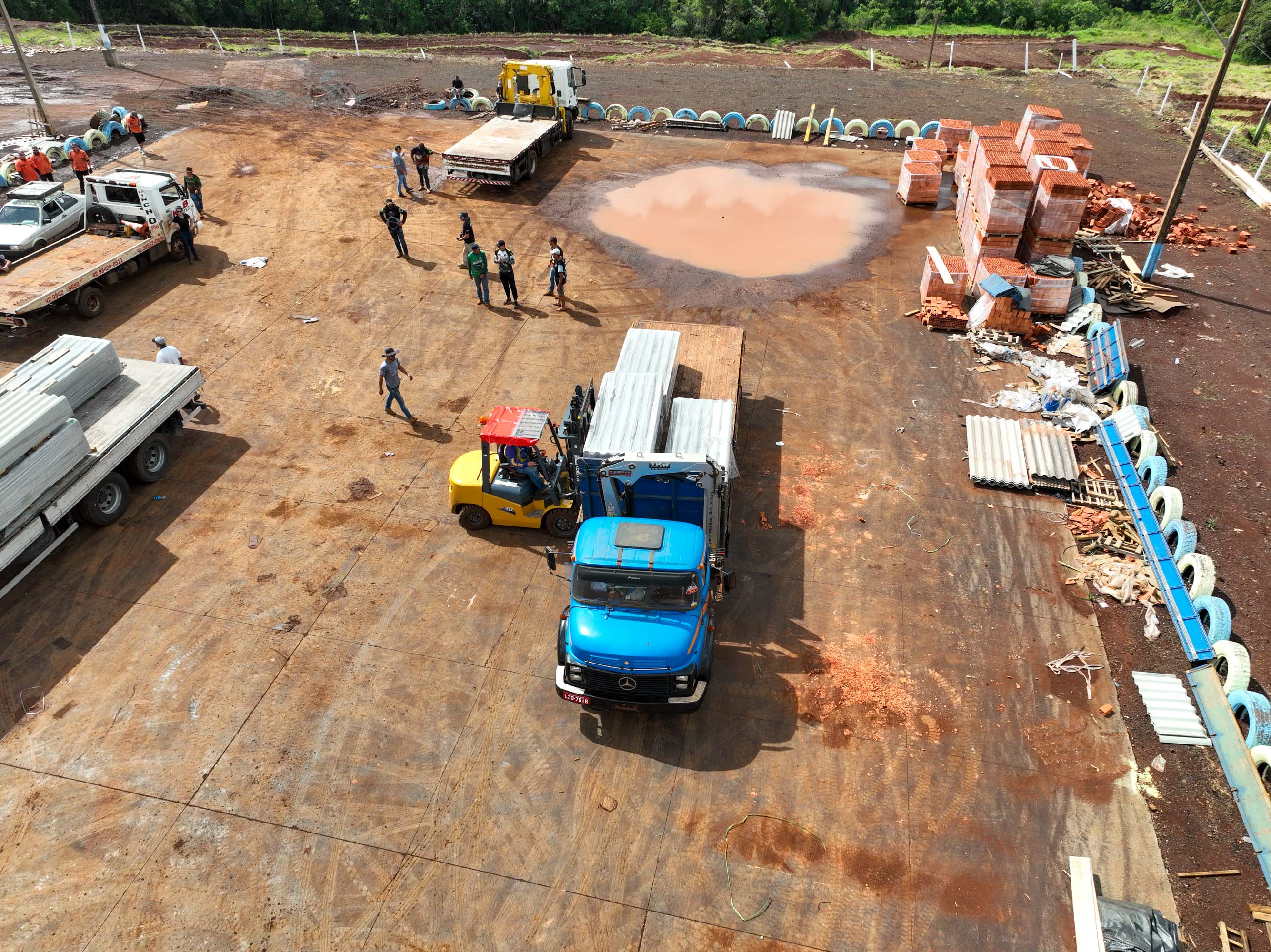“A chegada de materiais de construção tem impacto direto no ritmo das equipes que atuam em Rio Bonito do Iguaçu, permitindo que o processo de reestruturação avance com mais rapidez e segurança”, ressaltou o tenente Pedro Pierdoná do CBMPR, que participa da coordenação das operações na cidade, na região Centro-Sul do Estado.