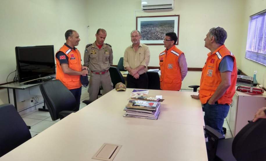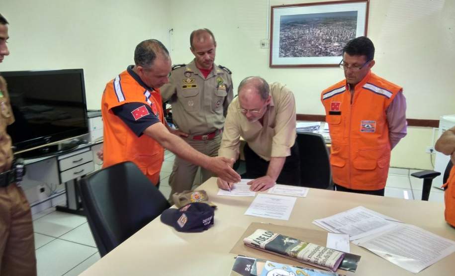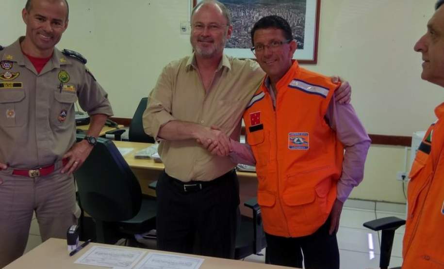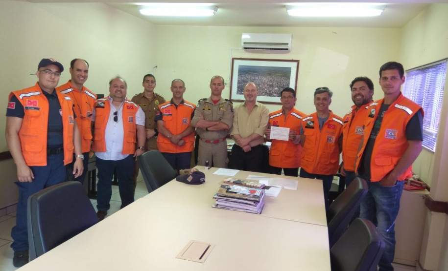 equipe de voluntários radioamadores, juntamente com o Sr. Major Wilson, Coordenador Adjunto da 3ª Coordenadoria Regional de Proteção e Defesa Civil (CORPDEC) estiveram reunidos na sede da Guarda Municipal de Londrina, para assinatura e entrega de Ofício ao Secretário Municipal de Defesa Social de Londrina, Sr. Evaristo Kuceki (Coordenador Municipal de Proteção e Defesa Civil - COMPDEC).