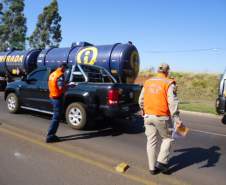 A fiscalização ocorreu em frente ao posto do Batalhão de Polícia Rodoviária Estadual - BPRV, além de integrantes do Corpo de Bombeiros e BPRV participaram também representantes da Receita Estadual e Coordenadoria Municipal de Defesa Civil de Cruzeiro do Oeste.