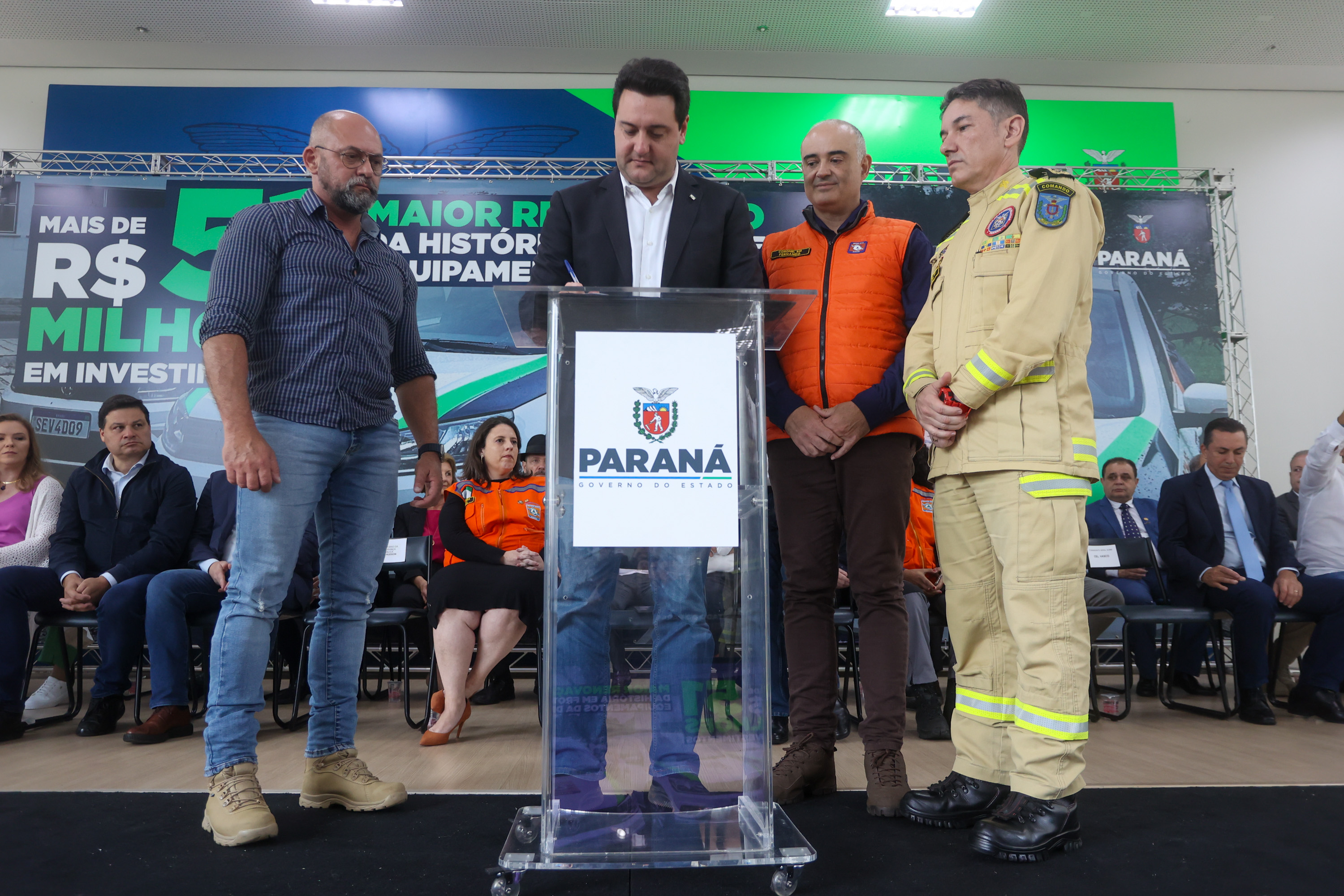 AUMENTO DE RECURSOS - Segundo o governador, a autonomia administrativa do Corpo de Bombeiros Militar do Paraná, que compõe o sistema de Defesa Civil Estadual, também fez a diferença para a ampliação dos investimentos. “Com o apoio da Assembleia Legislativa, nós fizemos um desmembramento do Corpo de Bombeiros da Polícia Militar, o que resultou em um aumento de R$ 40 milhões para R$ 118 milhões no orçamento da Corporação para o próximo ano, triplicando os investimentos em infraestrutura, equipamentos e treinamento”, concluiu.