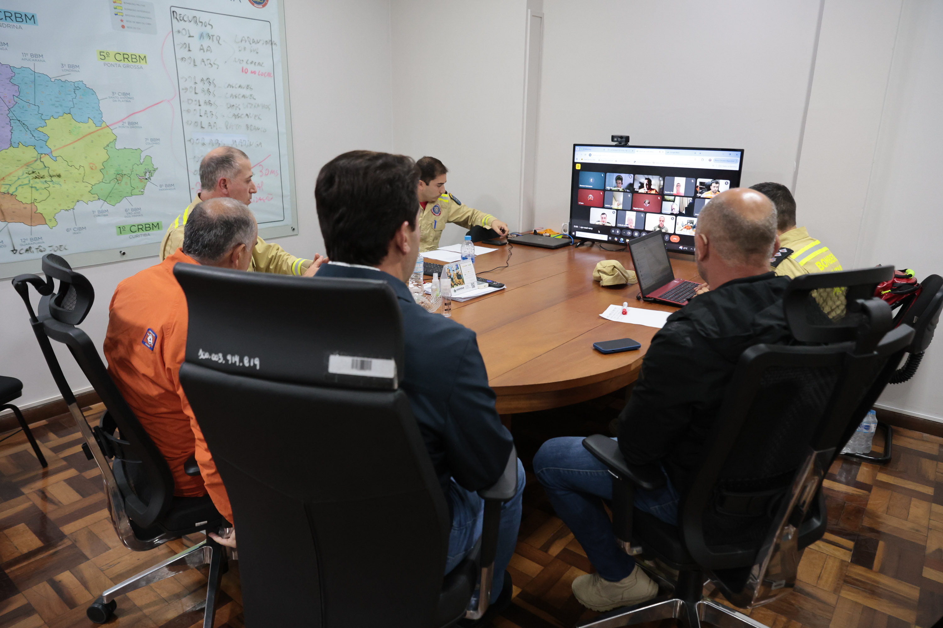 O governador Carlos Massa Ratinho Junior comandou uma reunião de emergência na noite desta sexta-feira no Quartel Central do Corpo de Bombeiros com o secretário da Segurança Pública, Hudson Leôncio Teixeira, o coordenador da Defesa Civil do Paraná, coronel Fernando Schunig, e representantes do Corpo de Bombeiros e Polícia Militar. Ele também participou de uma videoconferência com bombeiros, policiais, representantes da Defesa Civil das regiões mais afetadas e meteorologistas do Simepar para entender a dimensão dos estragos.