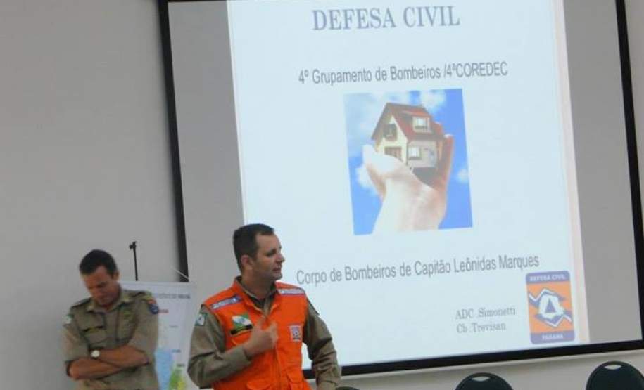 O coordenador adjunto da 4ª Coredec, Capitão Schinda, realizou uma apresentação sobre as atividades da defesa civil na região e também citou o desastre que ocorreu no município de Corbélia, as dificuldades e ações que foram desenvolvidas para atender as necessidades da população.