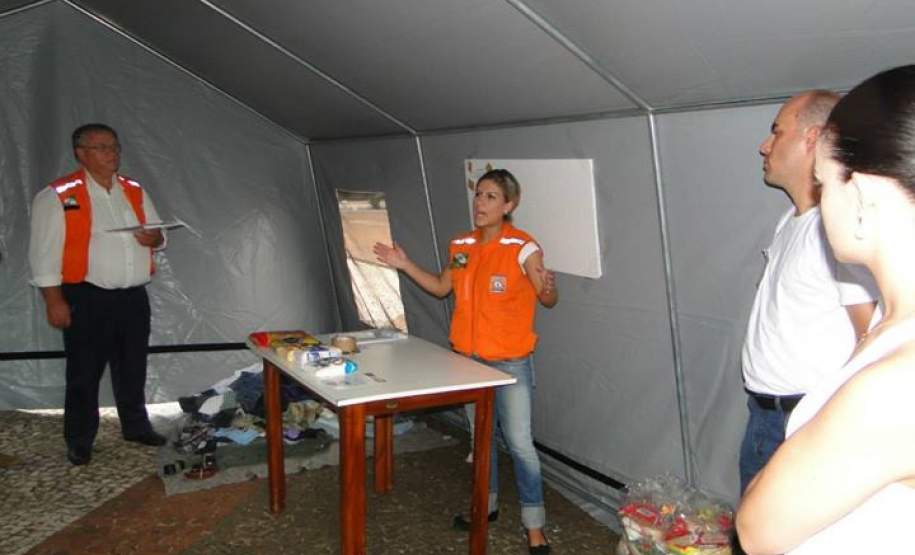 Contamos ainda, com a palestra do Sr. Ayr Belinho, sobre como proceder com as vítimas de desastres, como estes ficam abaladas psicologicamente. E a apresentação da Sra. Bernadete Moritz de Oliveira, que é representante do CAV (Centro de Ação Voluntária - Cascavel).