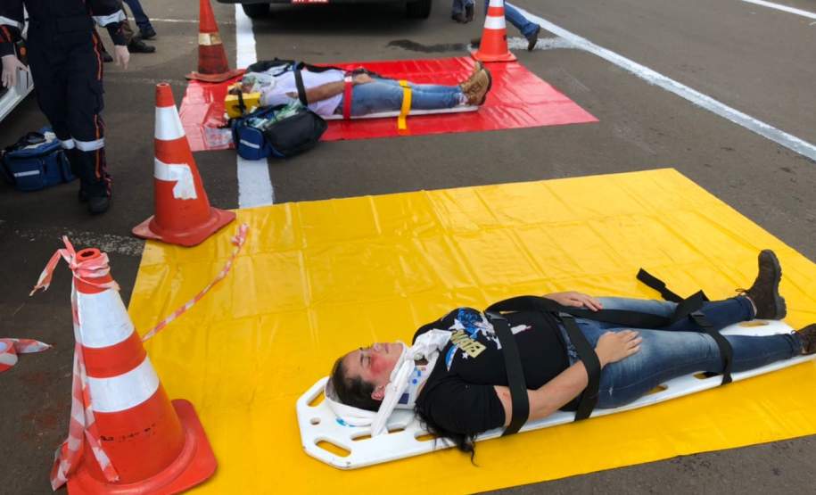 Foram empregados: 1 Auto Bomba Tanque e Resgate, 2 Ambulâncias do Corpo de Bombeiros, 1 Ambulância SAMU, 1 Ambulância do SIATE e Oficial de Área, Aeromédico e integrantes do PAM .