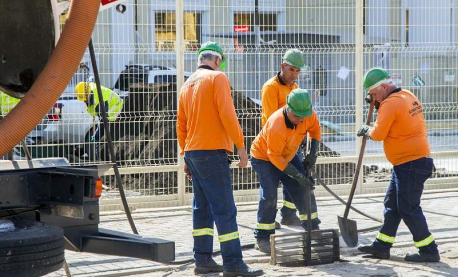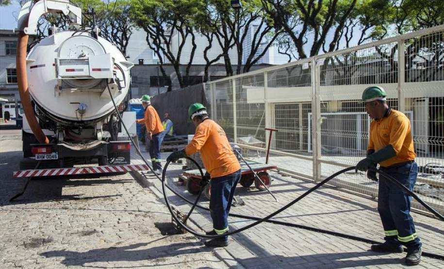 Na sexta-feira (6/10) o trabalho de limpeza das caixas de captação e galerias foi feito na Rua Piquiri, entre a Engenheiros Rebouças e a Avenida Presidente Getúlio Vargas.