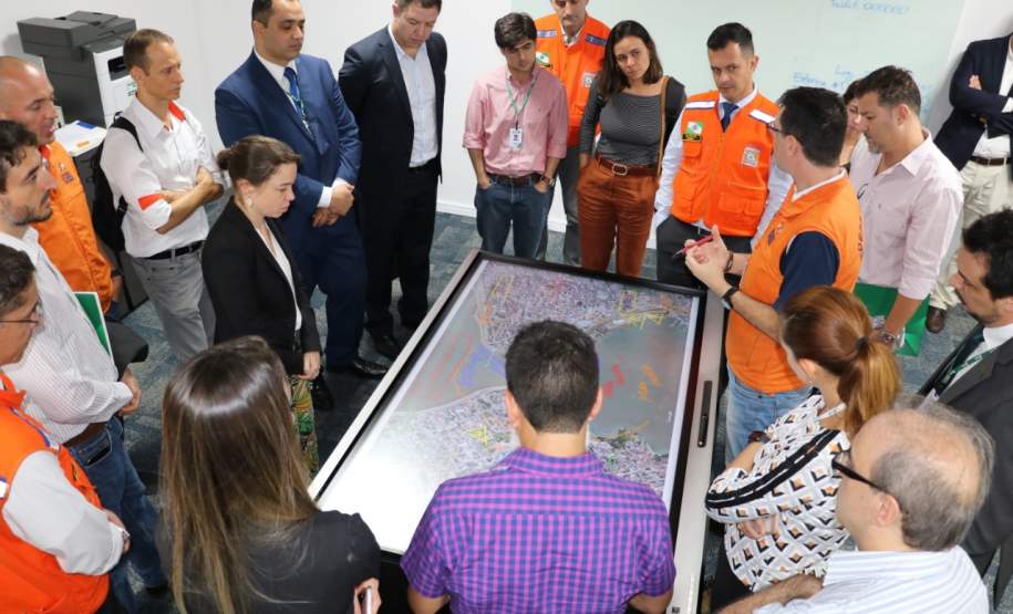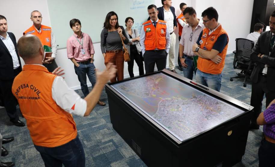 Durante o evento os participantes visitaram também o Centro Integrado de Gerenciamento de Riscos e Desastres – CIGERD, responsável pelo monitoramento meteorológico e envio de alertas de Defesa Civil em Santa Catarina . Os participantes conheceram a estrutura do Centro e sua forma de funcionamento.