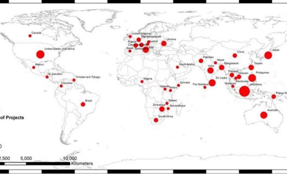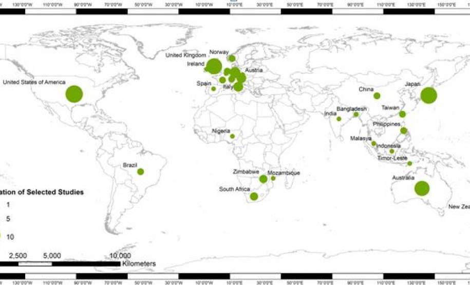 Os pesquisadores do Cemaden realizaram a revisão da literatura científica de 93 artigos selecionados, cujos resultados podem apoiar futuras ações relacionadas ao sistema de alerta e à ciência cidadã. Os resultados da pesquisa mostraram que há uma concentração de estudos sobre sistemas de alerta em países asiáticos (55,9% dos estudos selecionados – Fig. 1), bem como a concentração da produção científica em organizações de países desenvolvidos (49,46% dos artigos selecionados têm autores e co-autores afiliados em organizações dos Estados Unidos, Japão, Reino Unido e Austrália- Fig. 2) . Além disso, os resultados desta revisão de literatura forneceram evidências da predominância de inundações como a principal ameaça natural estudada (29% dos estudos selecionados).