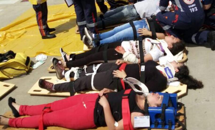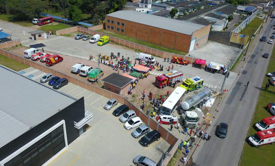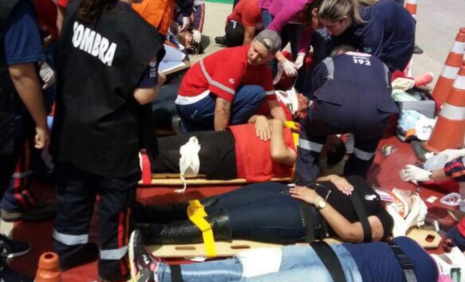 A simulação envolveu acidente de trânsito com um ônibus da signatária SANJOTUR (30 vítimas: voluntários/alunos das signatárias Padilha Treinamentos, Academia Barro Preto, Centro Educacional Menna Barreto, Força Vital, Sanjotur e Kuhn Montana), o qual acessando a Marginal Vanderlei Moreno veio a colidir com um veículo (disponibilizado pela Signatária Renault).