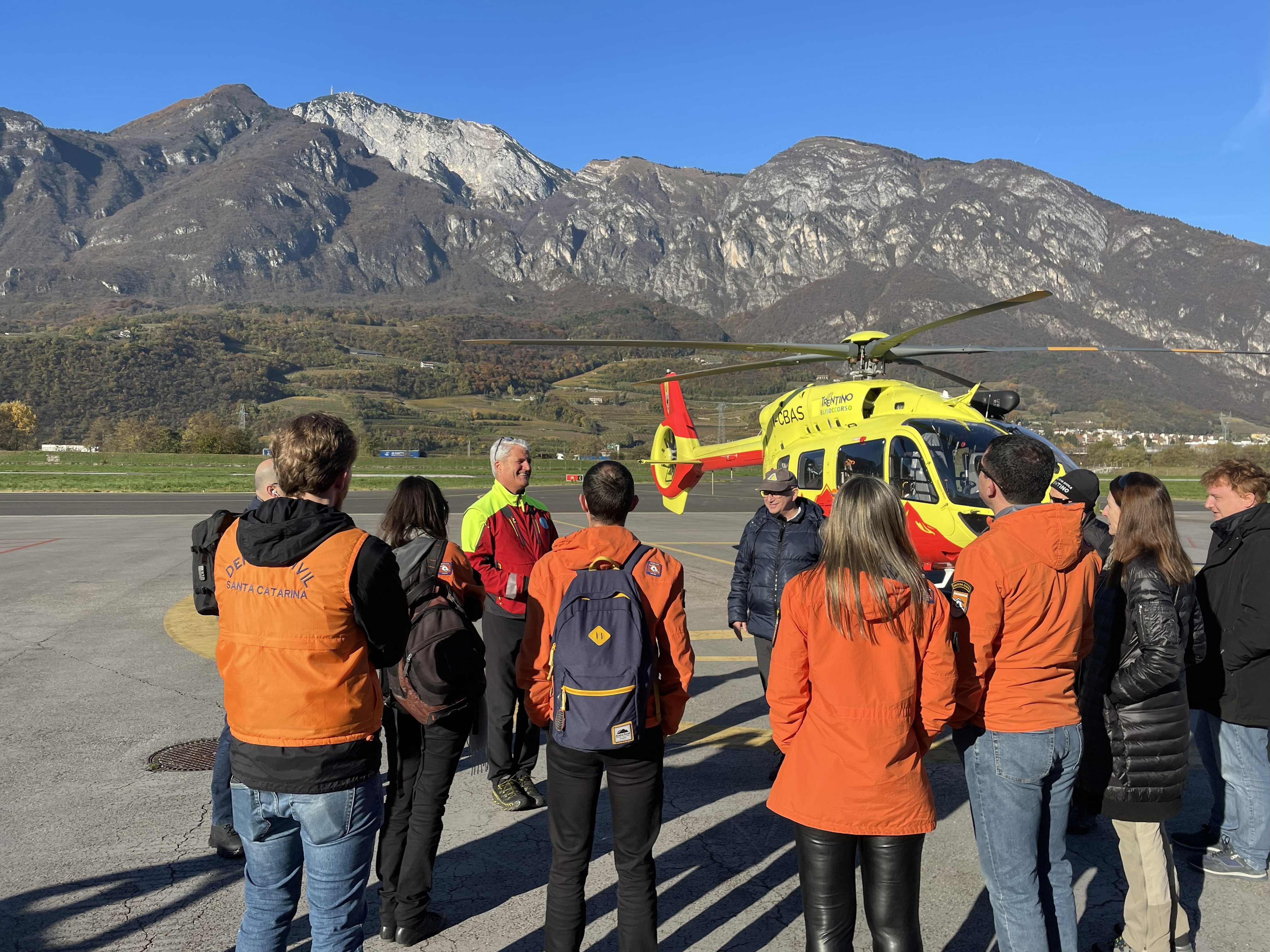 A Província Autônoma de Trento é referência em ações relacionadas com o voluntariado e a integração em ações de prevenção, resposta e recuperação diante de emergências. O grupo foi recebido por autoridades locais e as atividades incluíram visitas, palestras técnicas e demonstrações operacionais.
