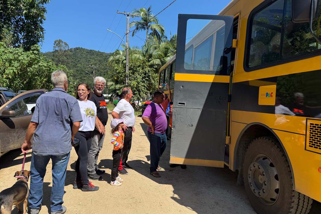 ASSOCIAÇÃO - Na estrada de terra que separa casas com grandes jardins e propriedades rurais localizadas na base da Serra do Mar, os moradores se concentraram na sede da associação de moradores. Neste ponto, duas pessoas que, no simulado teriam problemas graves de saúde, foram resgatadas de helicóptero, enquanto os demais seguiram de ônibus para o Colégio Estadual Osny Fraga, a poucos quilômetros dali. No abrigo, os moradores acompanharam palestras que reforçaram cuidados essenciais de proteção à vida diante de situações extremas como a tragédia de 2011.